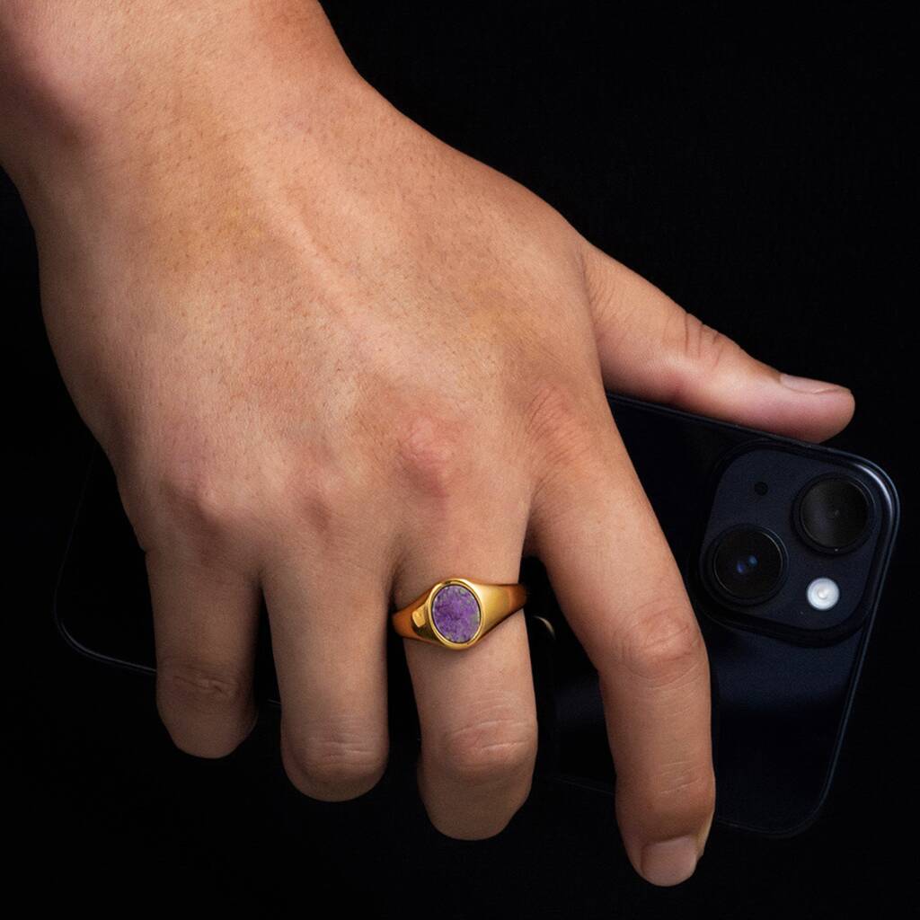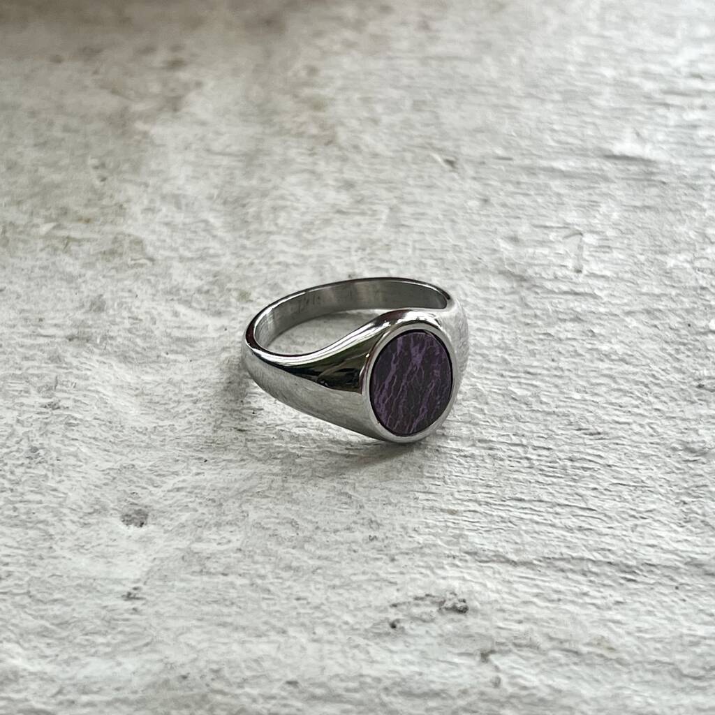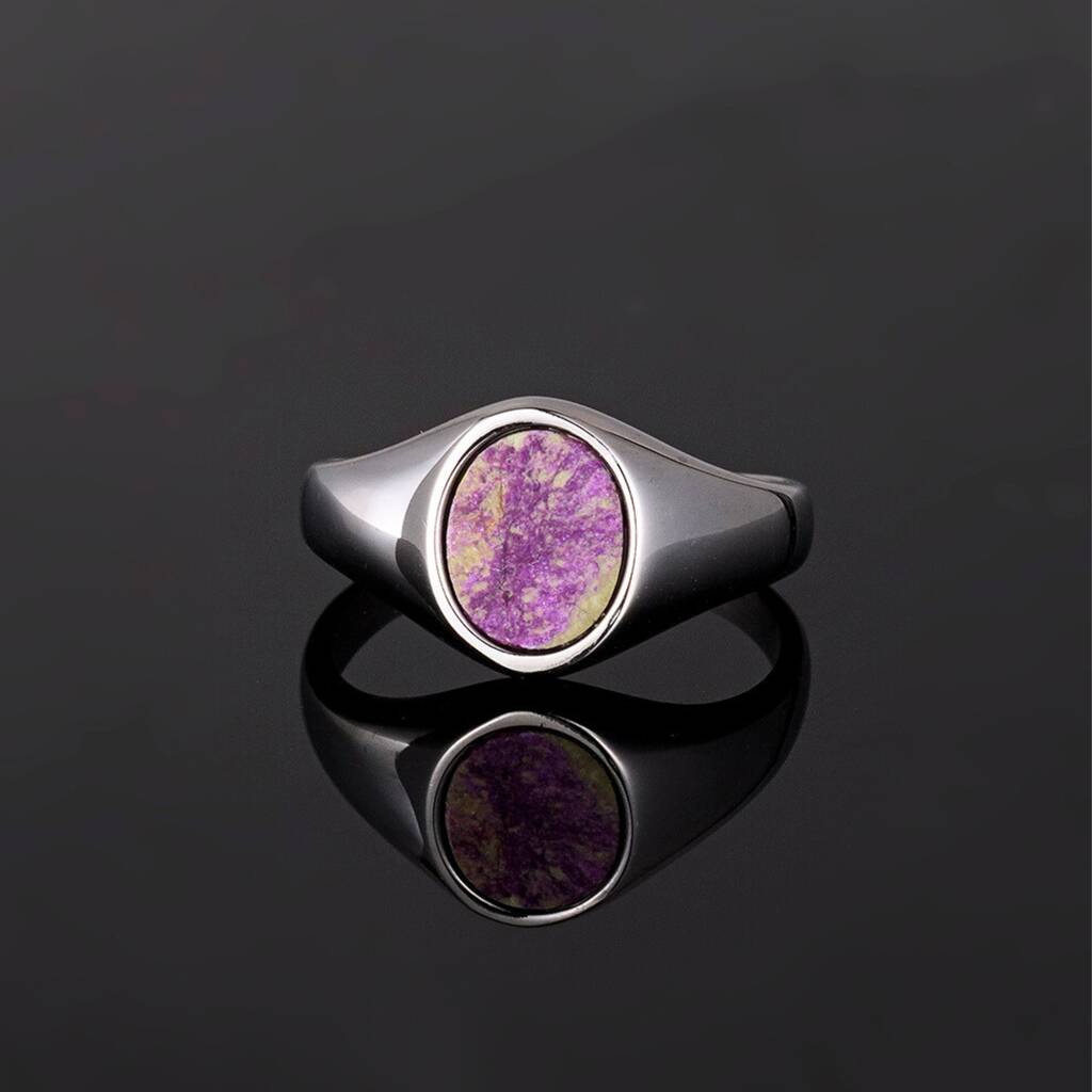 Silver Purple Gemstone Oval Signet Ring For Men / Women