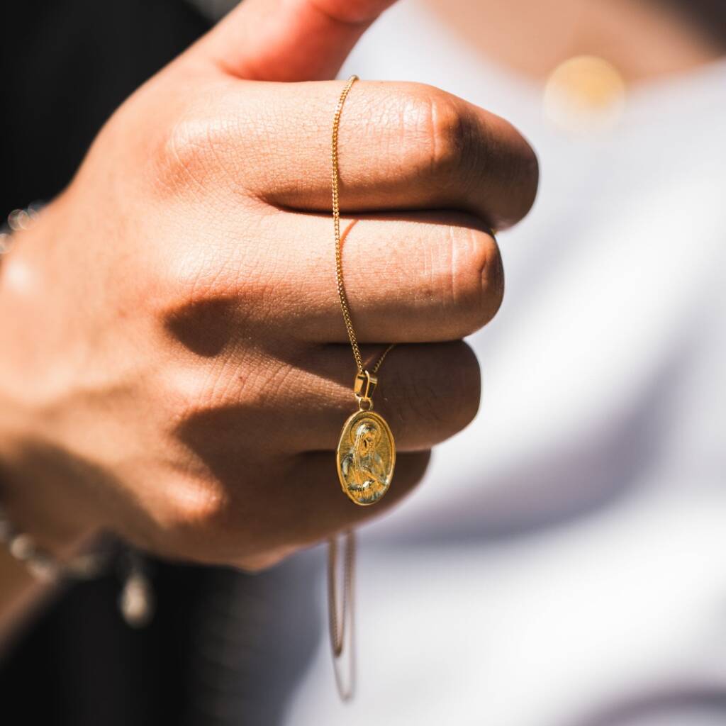 • Virgin Mary Silver Oval Pendant Chain Necklace For Men, thumbnail 9 of 9