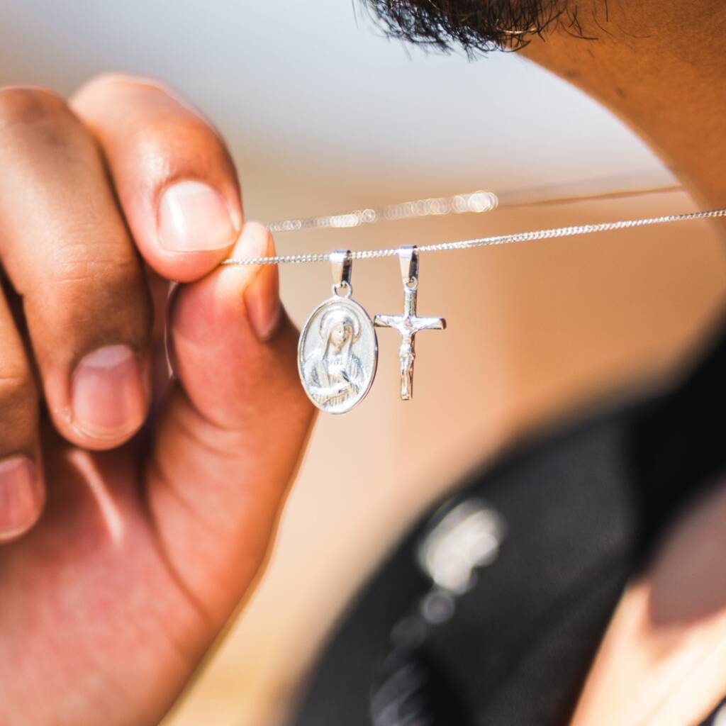 • Virgin Mary Silver Oval Pendant Chain Necklace For Men, thumbnail 1 of 9