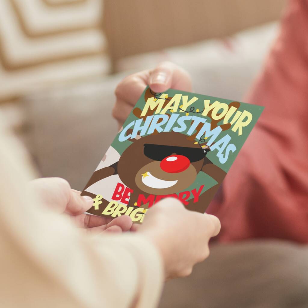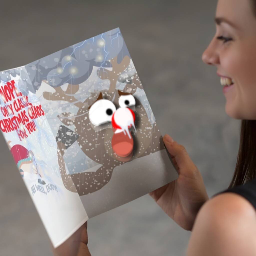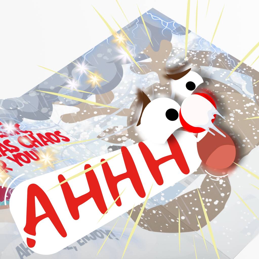 Funny Christmas Card With Chaotic Screaming, Shaking And Light Up Rudolph, 1 of 12
