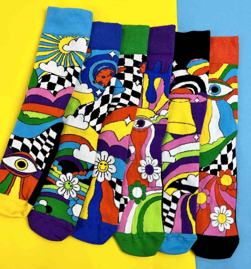 Outrageous Style, Every Step: Step into a new dimension with Sockedelic—six dazzling odd socks inspired by kaleidoscopic visions of rainbows, sunbursts, flowers, and checkerboard skies.Designed for Gifting & Grins: These way-out socks come packed in a colourful, eye-popping gift box that’s sure to light up any occasion. Whether it’s for a birthday, Christmas, or a just-because moment, Sockedelic makes the perfect gift for men who love bold style, retro design, or quirky accessories that bring out smiles and conversation.