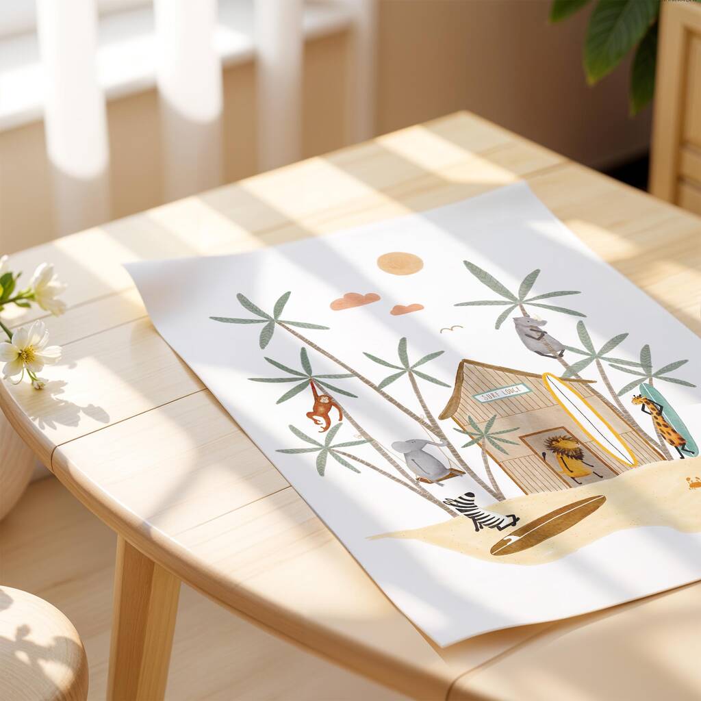 • Safari Animal Surf Camp Children's Art Print, thumbnail 3 of 3