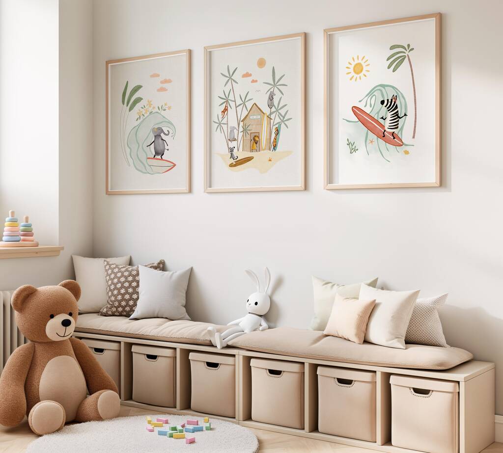 Whimsical Safari Animal Surfers Wall Art Print Set