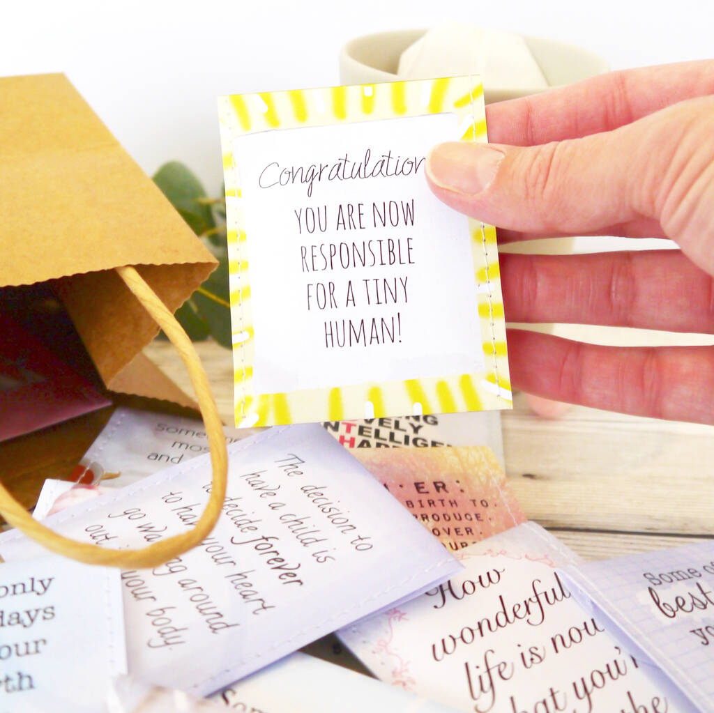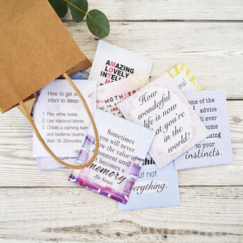 The envelopes feature sweet, encouraging and funny quotes - perfect as a baby shower gift, new mum present, or a thoughtful letterbox gift for a friend who’s just had a baby.