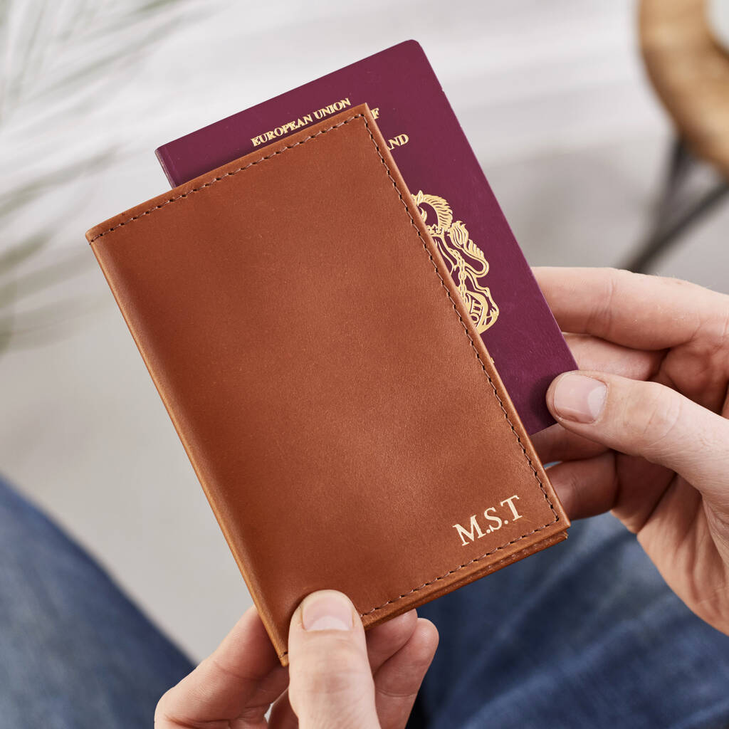 The passport cover can be personalised with hot-stamped initials, name or short message. You can choose to have this in black, gold or blind (just heat).