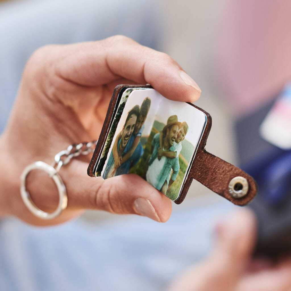 • Personalised Leather Eight Photo Mini Book Keyring For Dad With Hot Stamped Initials, Name Or Date, thumbnail 1 of 11