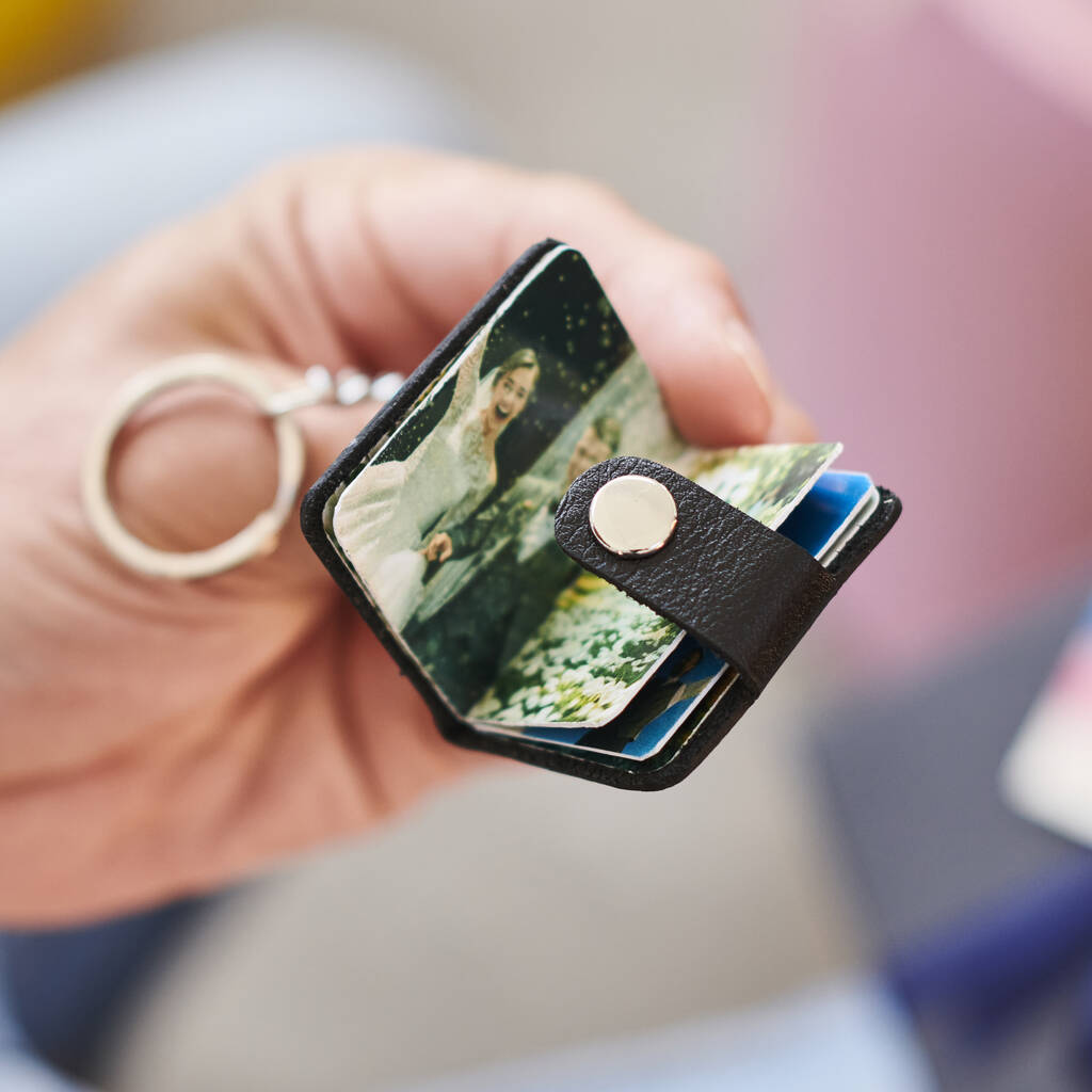 • Personalised Leather Eight Photo Mini Book Keyring For Dad With Hot Stamped Initials, Name Or Date, thumbnail 4 of 11