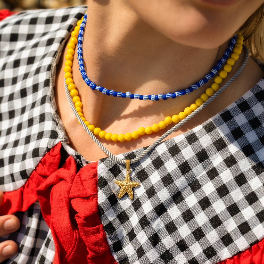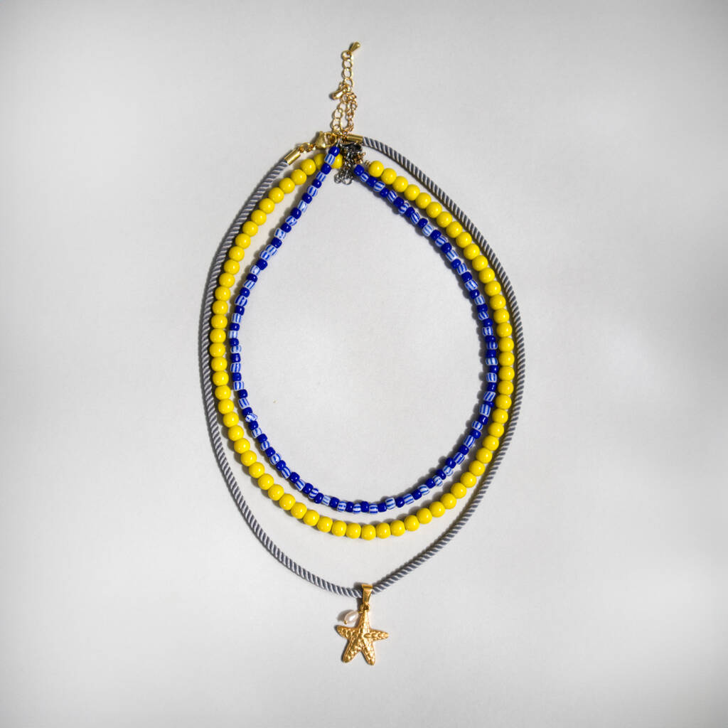 Blue Yellow Bead And Starfish Necklace Set Of Three