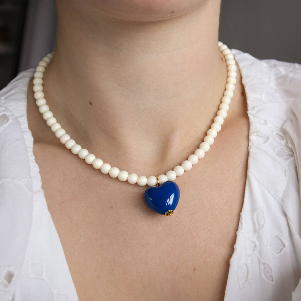 Cream And Blue Stripe Bead Necklace Set Of Two