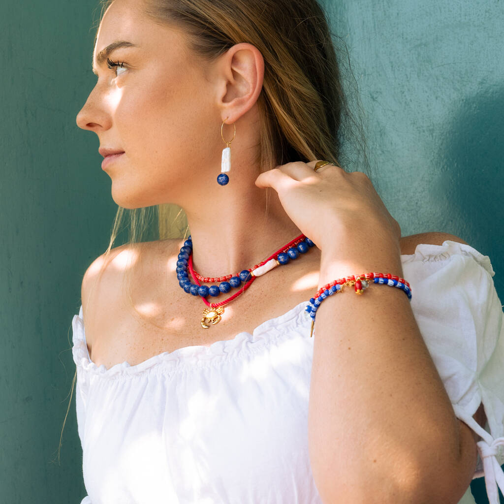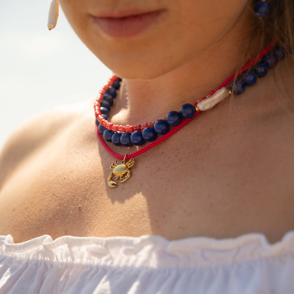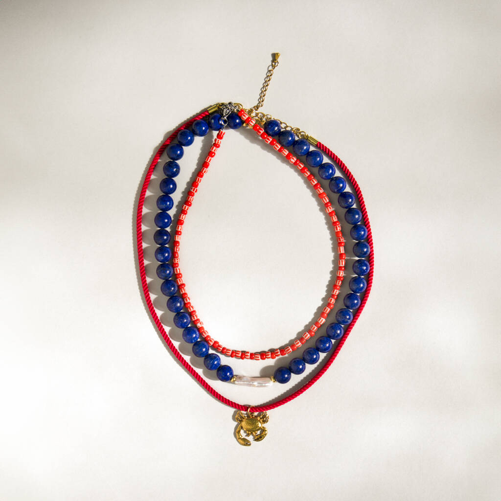 Lapis Lazuli Red Bead And Crab Charm Necklace Set Of Three