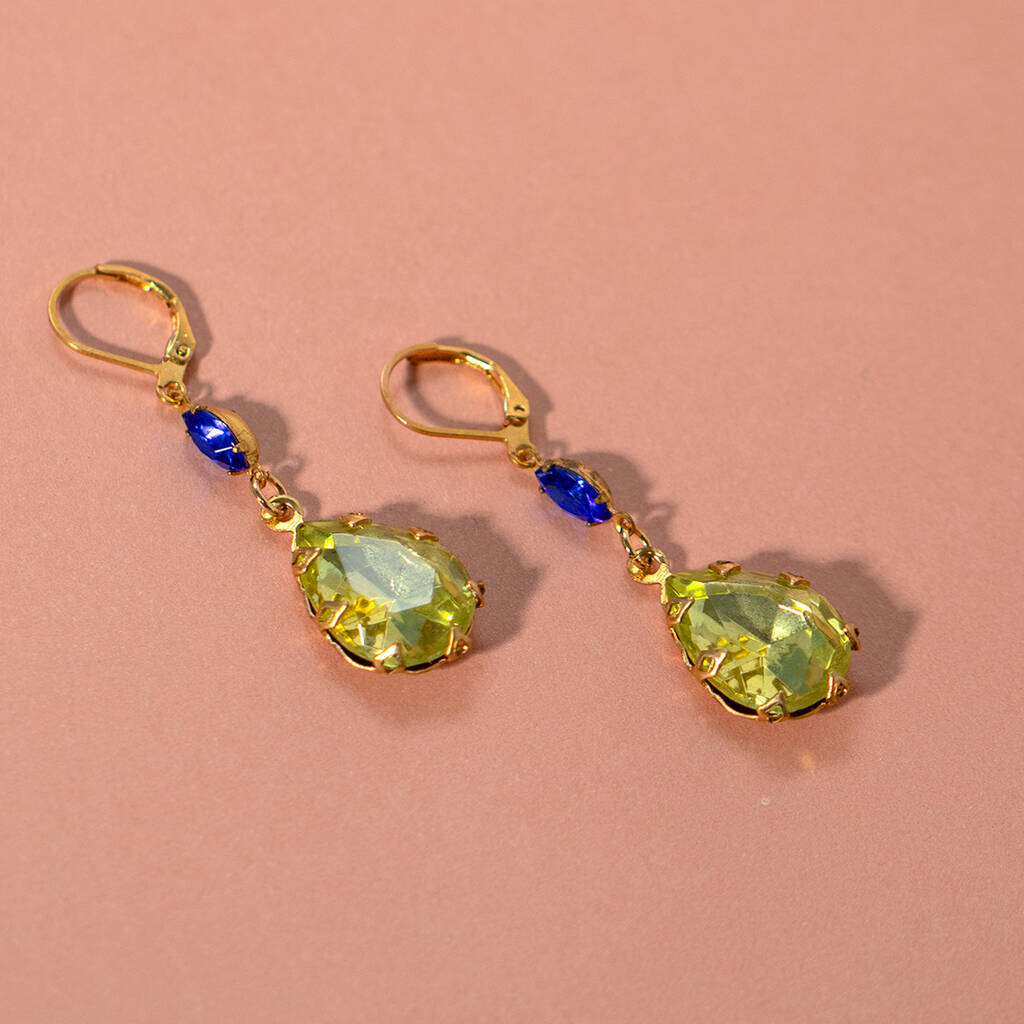 Statement Lime Green And Blue Rhinestone Drop Earrings