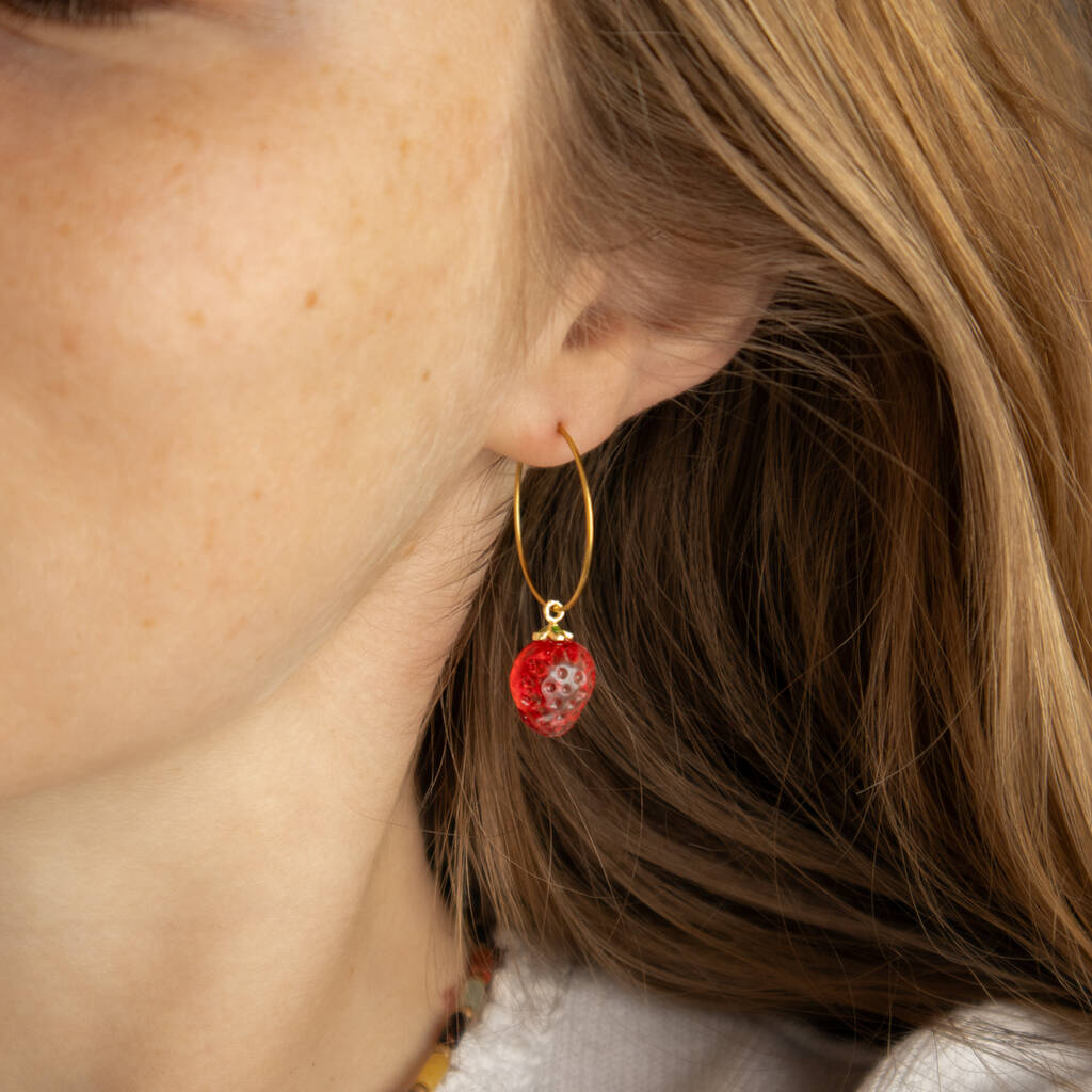 Sweet Strawberry Hoop Earrings, 1 of 3