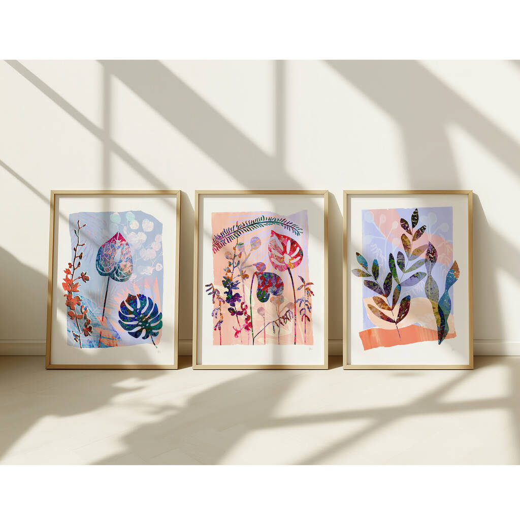 • Pastel Botanical Print Set – Soft Hand Painted Leaf And Flower Trio, thumbnail 8 of 12