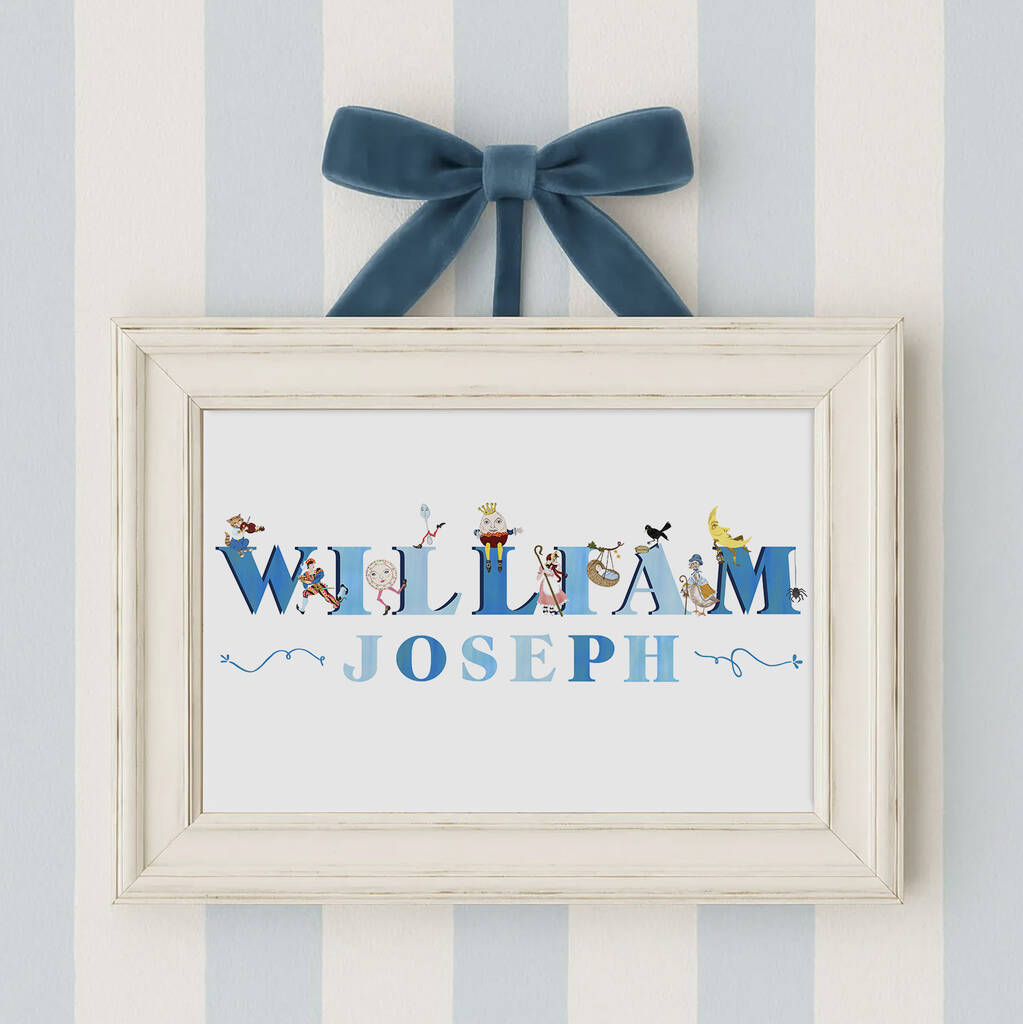 Personalised Nursery Rhyme Blue Name Print, 1 of 5