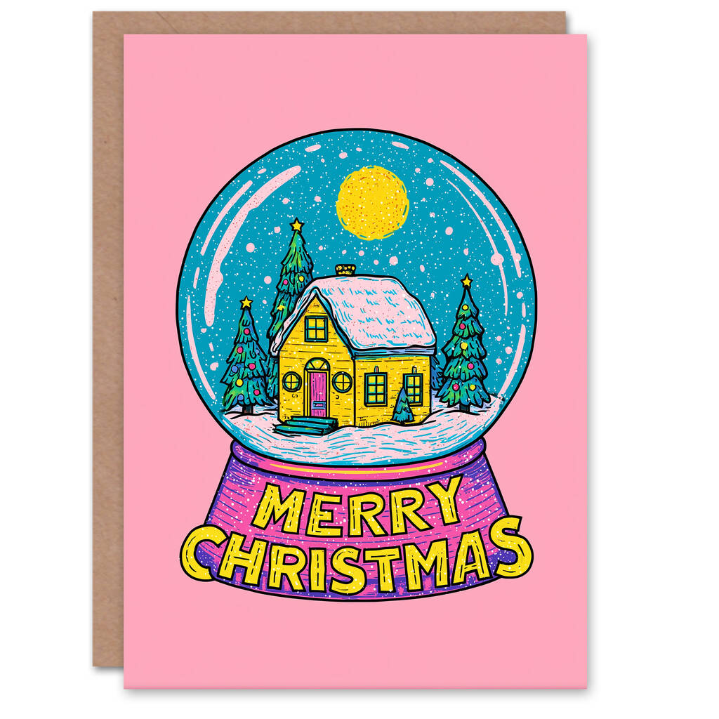 Colourful Winter Cabin Snow Globe Christmas Card For Kids