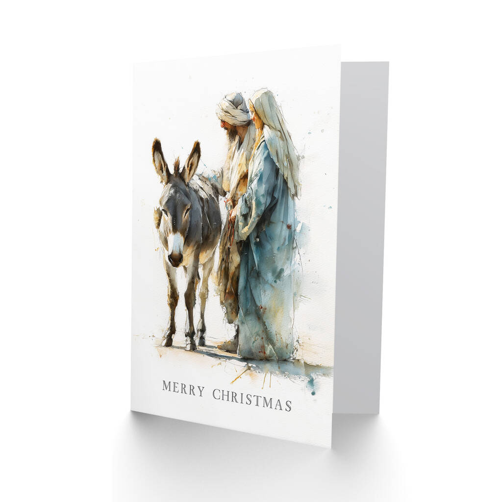 Mary Joseph And Donkey Watercolour Drawing Christmas Card