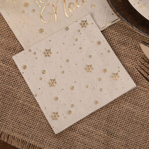 Gold Snowflake Ivory Christmas Paper Napkins Pack Of 20
