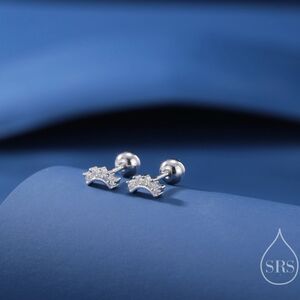 Asymmetric Blue Opal Cz Forget Me Not Flower Bouquet Internally Threaded Flat Back In Sterling Silver