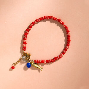 Semi Precious Pink Stone And Heart Beaded Necklace In Gold Plating