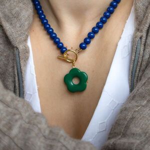 Cream Beaded Heart Charm Pendant Necklace In Gold Plating