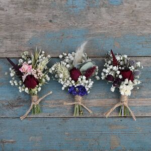 Set Of Three Wedding Dried Flower Dainty Buttonholes Meadow Reds