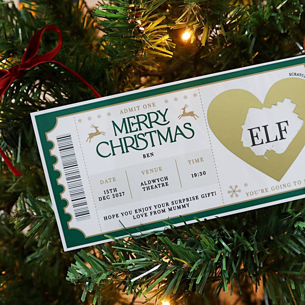 Elf Musical Christmas Ticket Surprise Scratch To Reveal Gift Card