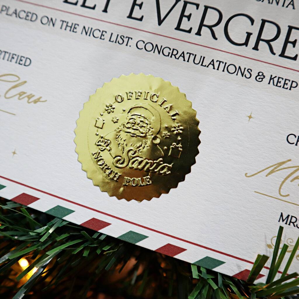 Santa Claus Sticker Gold Foil Embossed Seal Official North Pole Christmas Delivery Elf Mail