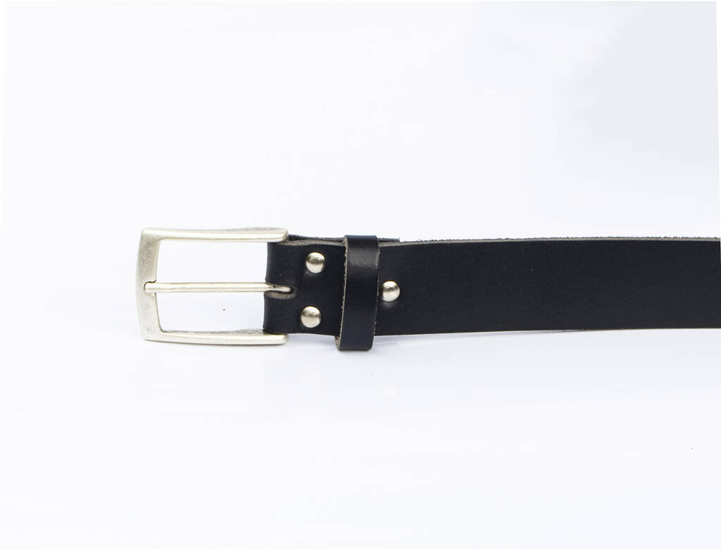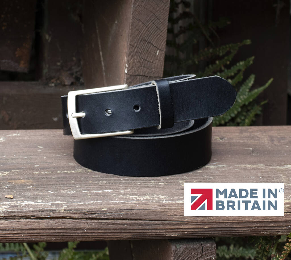 Handmade men’s black leather belt crafted in Britain from premium English hide. Durable & stylish – the perfect gift for him.