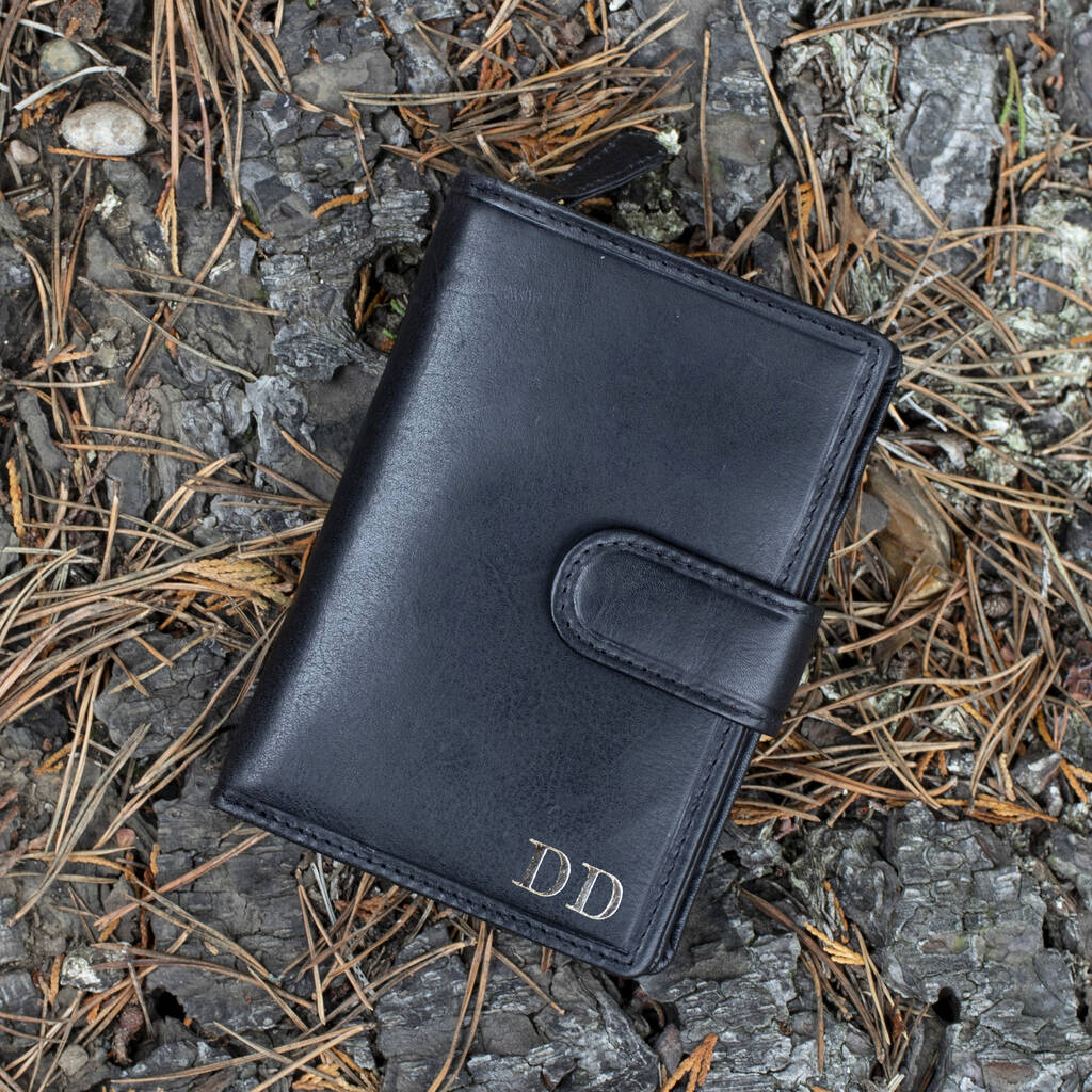 Women's Luxury Black Leather Tab Trifold Purse Rfid Protected Personsalised, 1 of 7