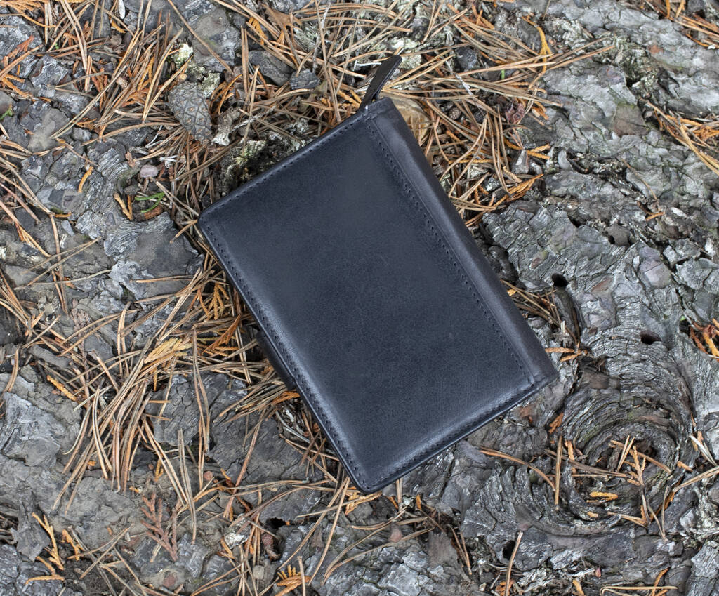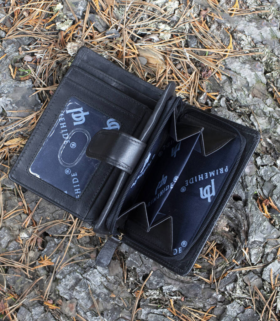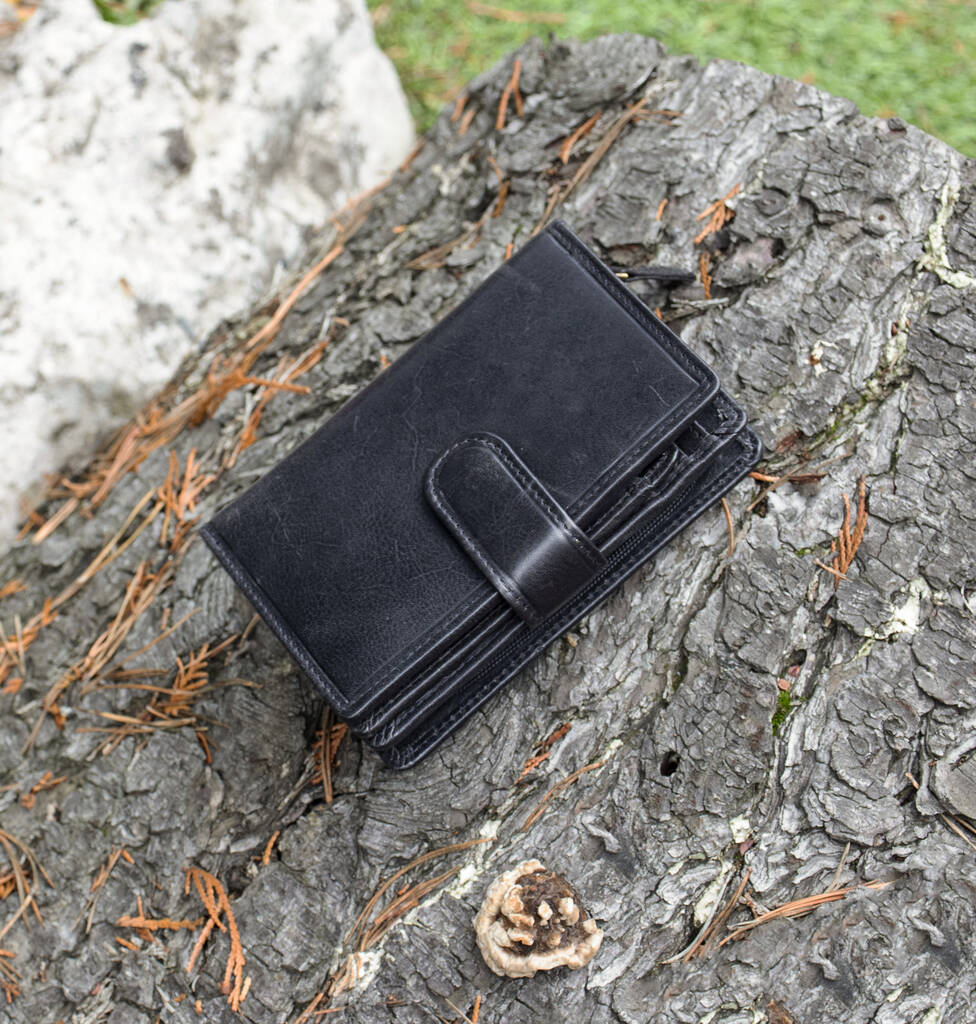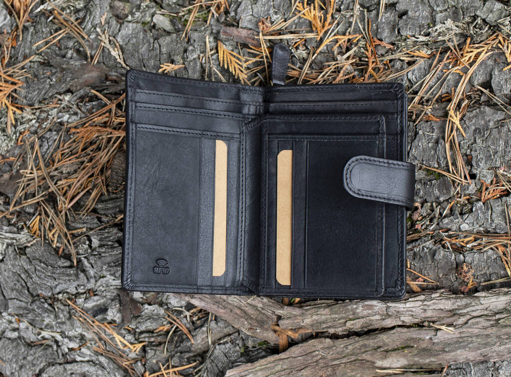 Women's Luxury Black Leather Tab Trifold Purse Rfid Protected Personsalised