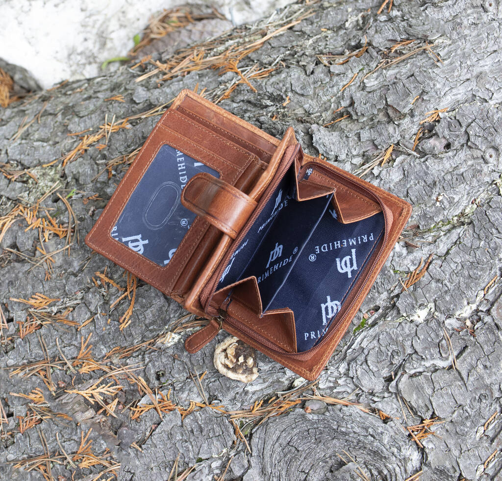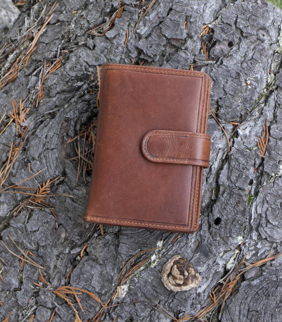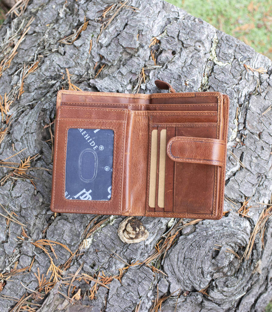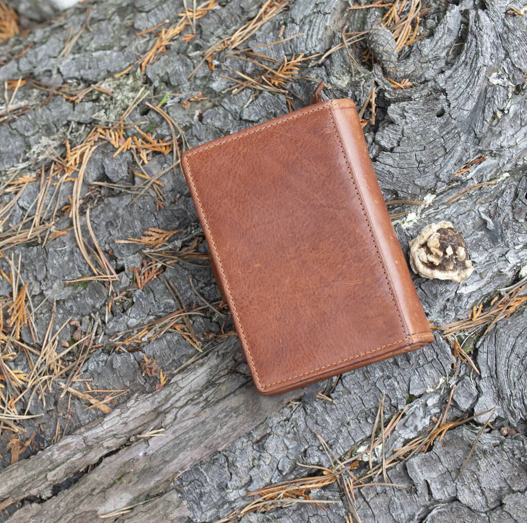 Women's Luxury Cognac Leather Tab Trifold Purse Rfid Protected Personsalised