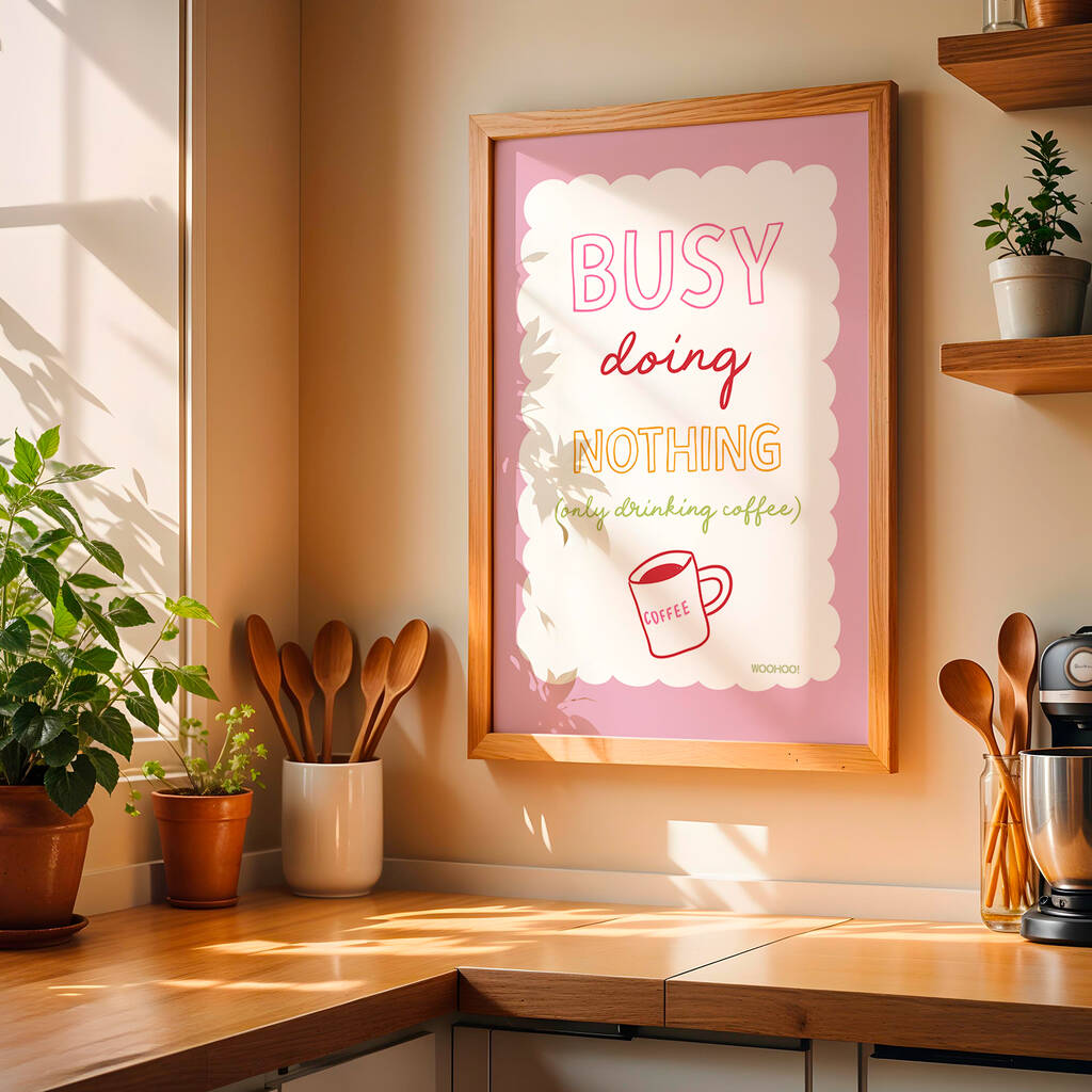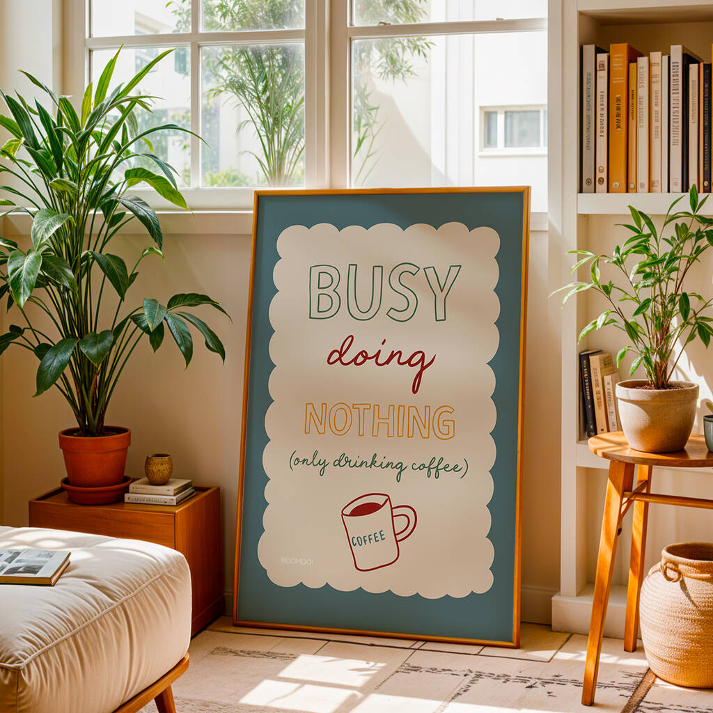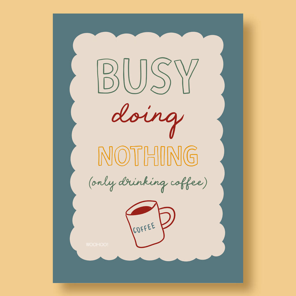 Busy Doing Nothing, Only Drinking Coffee Print, Two Colour Options