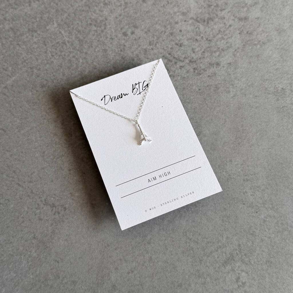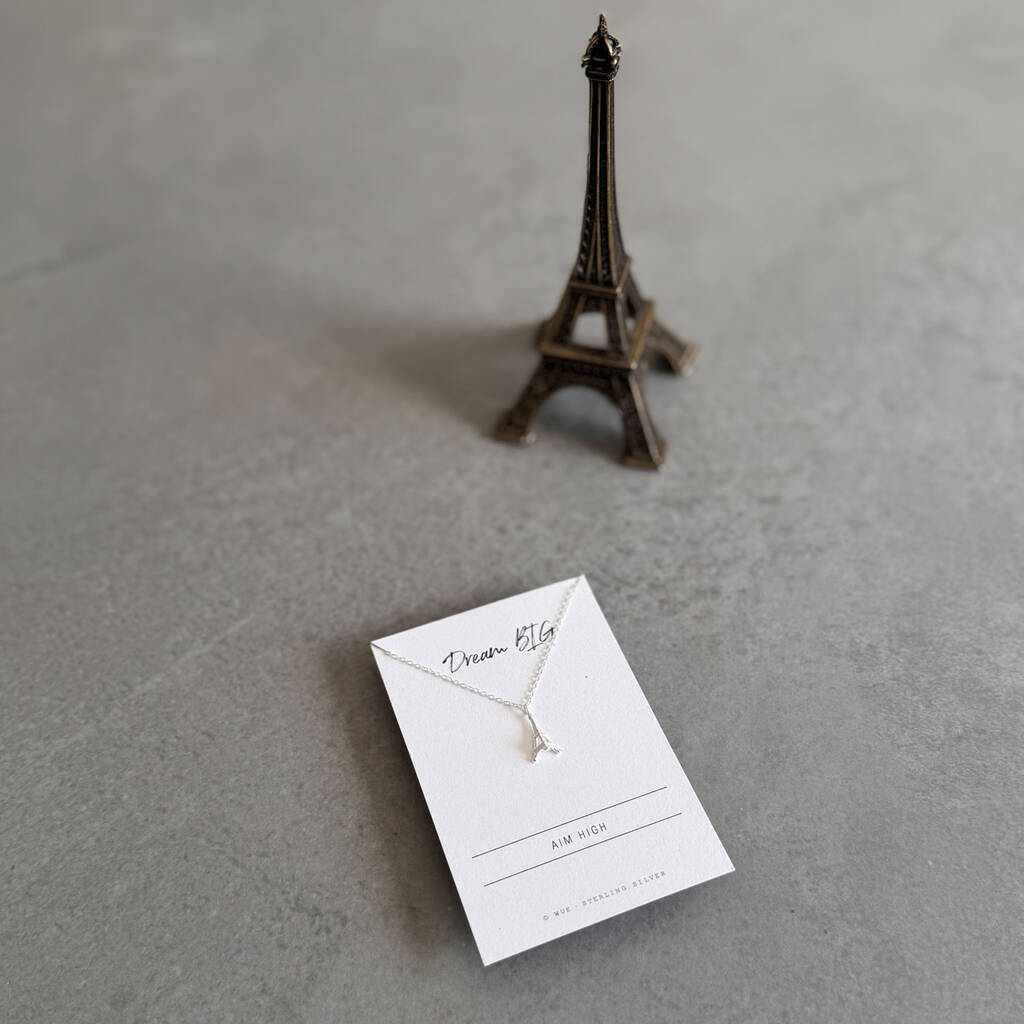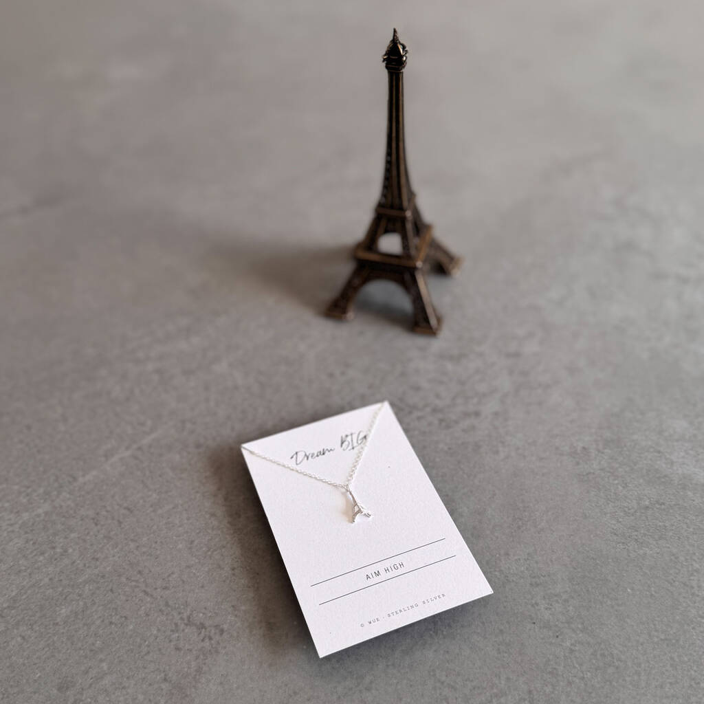 • Dream Big Sterling Silver Eiffel Tower Necklace – Motivational Gift For Her, thumbnail 1 of 8