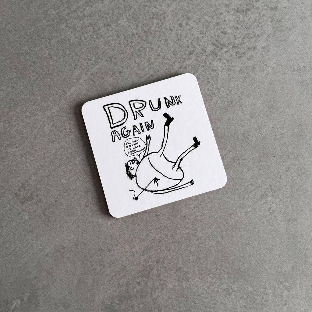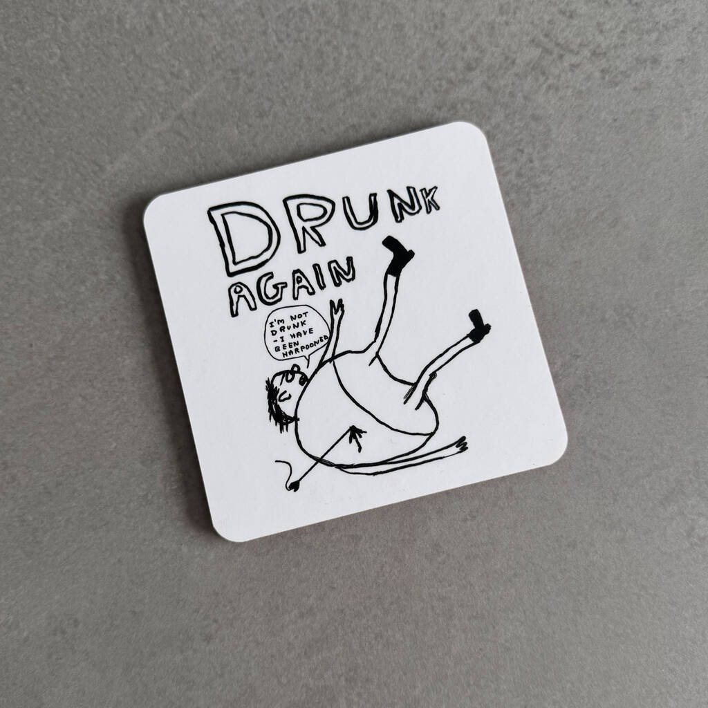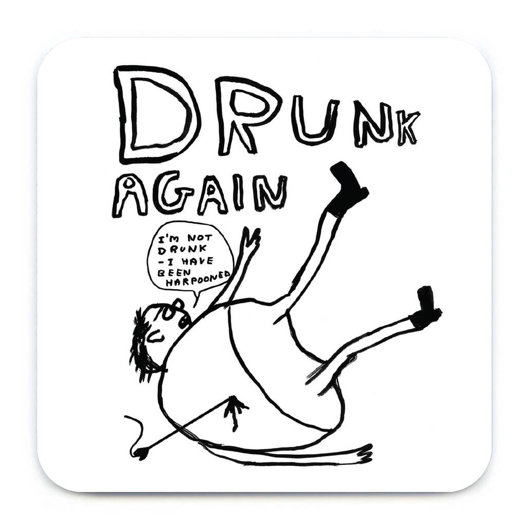 Drunk Again Coaster – David Shrigley Funny Art Design