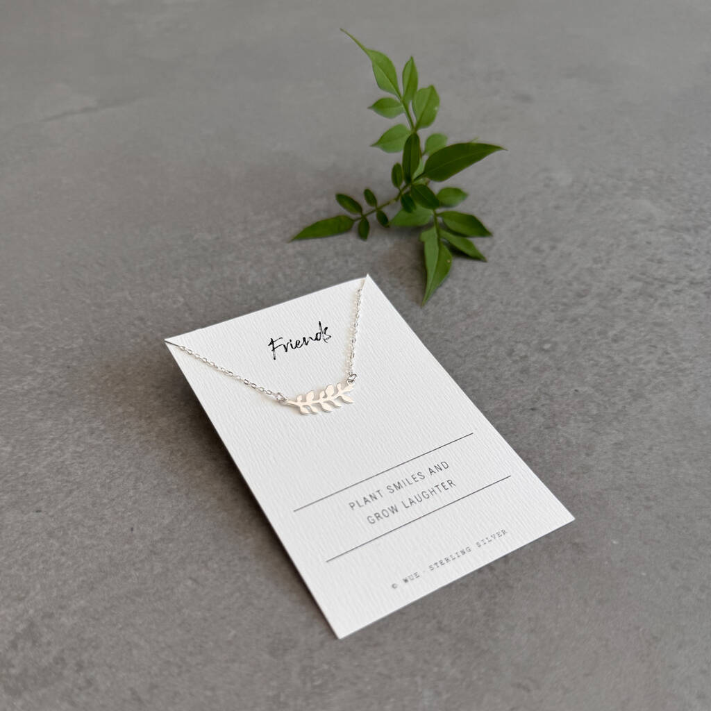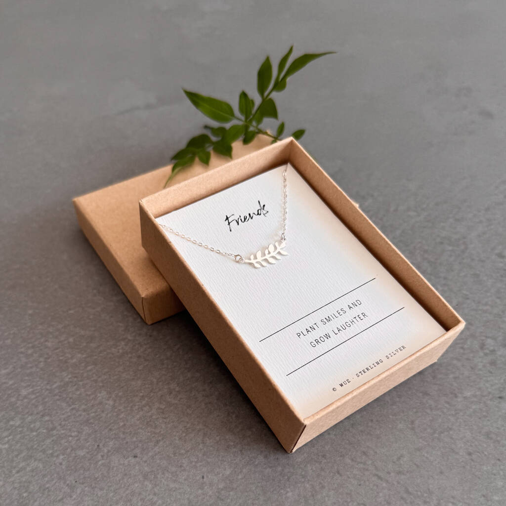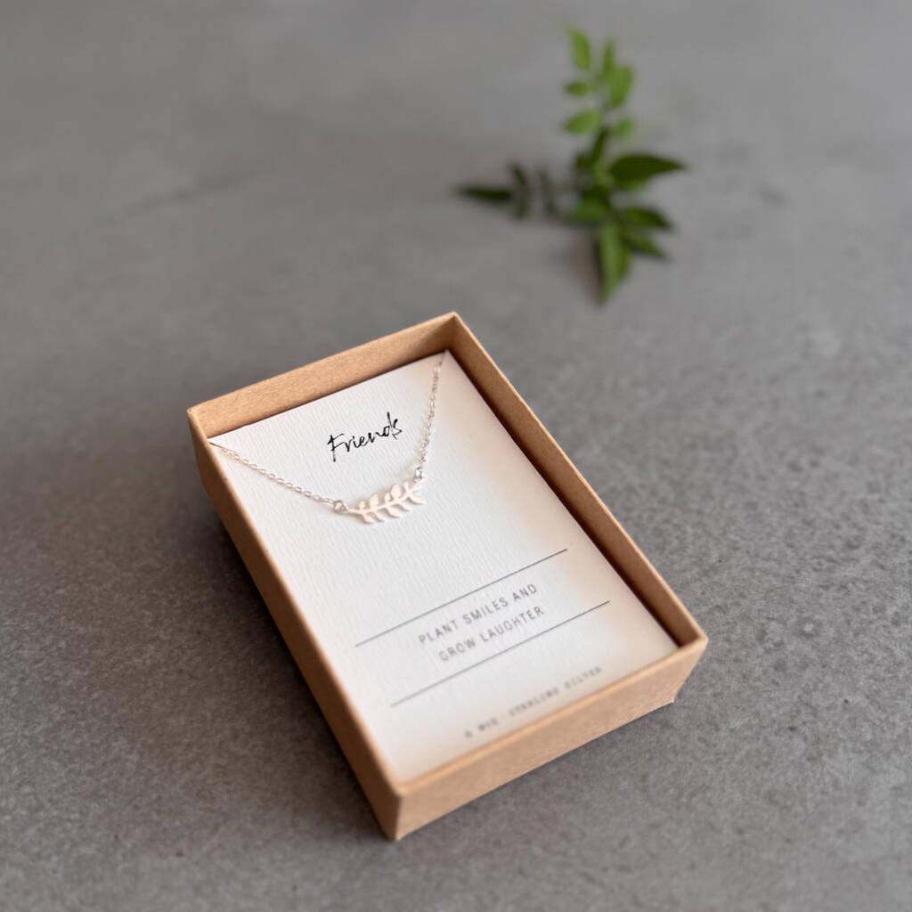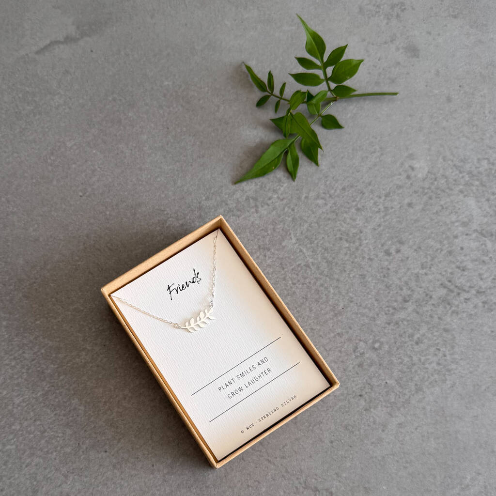 A sterling silver leaf friendship necklace with an optional personalised gift box.