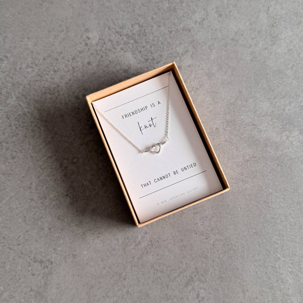 Friendship Heart Knot Necklace – Sterling Silver Gift For Best Friend