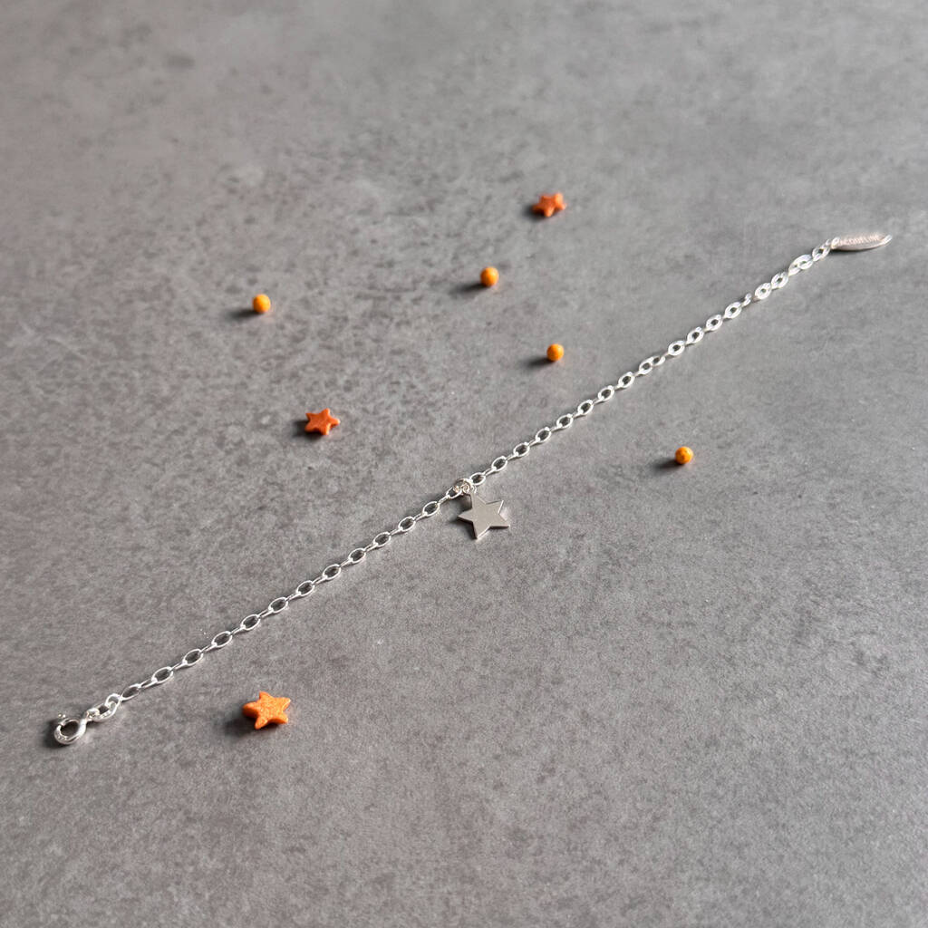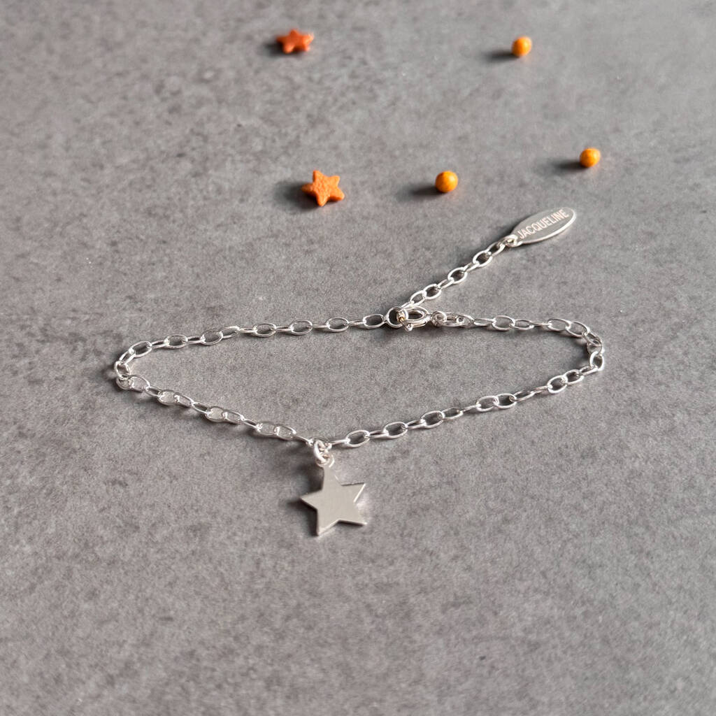 shining sterling silver charm bracelet featuring a star charm on a sterling silver trace chain.