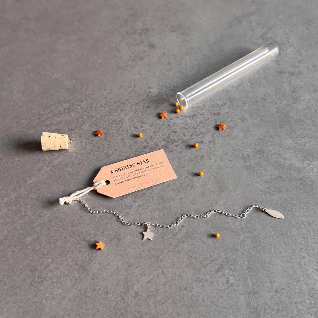 Made in England, this keepsake bracelet comes uniquely in a glass tube with a meaningful message tag of your choice. To make it extra special, add a personalised mini silver tag to the bracelet with a name, initials, words or a date which hangs delicately on the end of the bracelet.