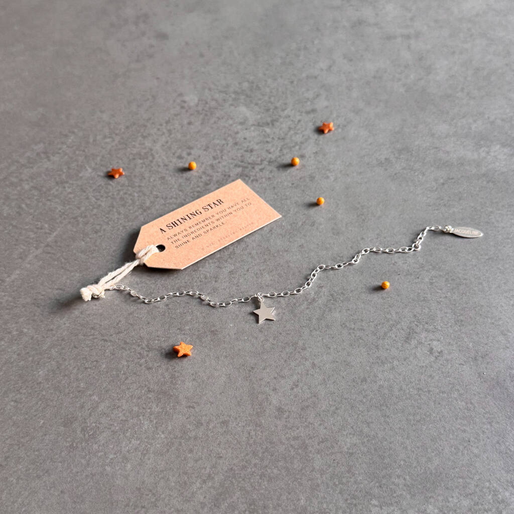 You are a star. You can do anything! From Wue’s collection of sterling silver charm bracelets, this star keepsake bracelet makes a lovely gesture for someone special or a secret treat for yourself. The little star gives a delightful twist to a delicate handcrafted bracelet.