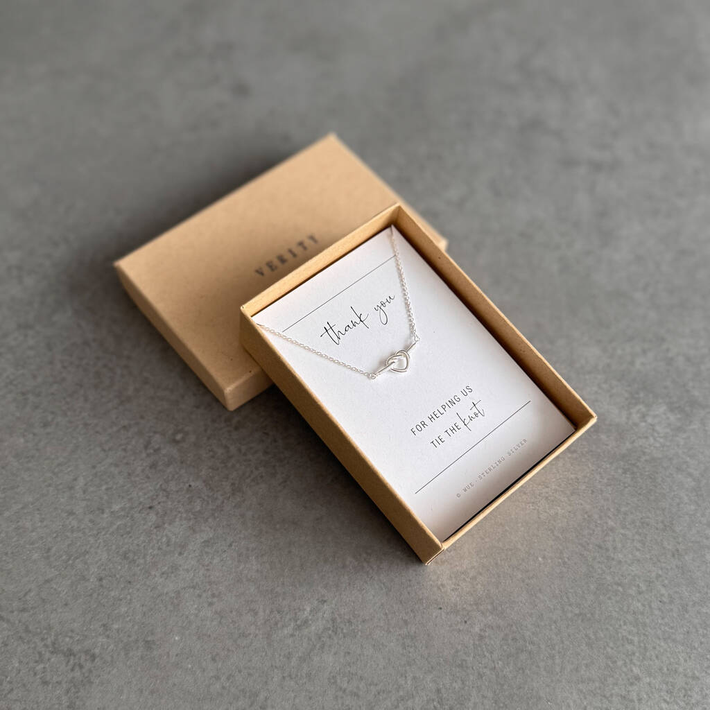 • Thank You Heart Knot Necklace – Bridesmaid Or Wedding Party Gift, thumbnail 12 of 12