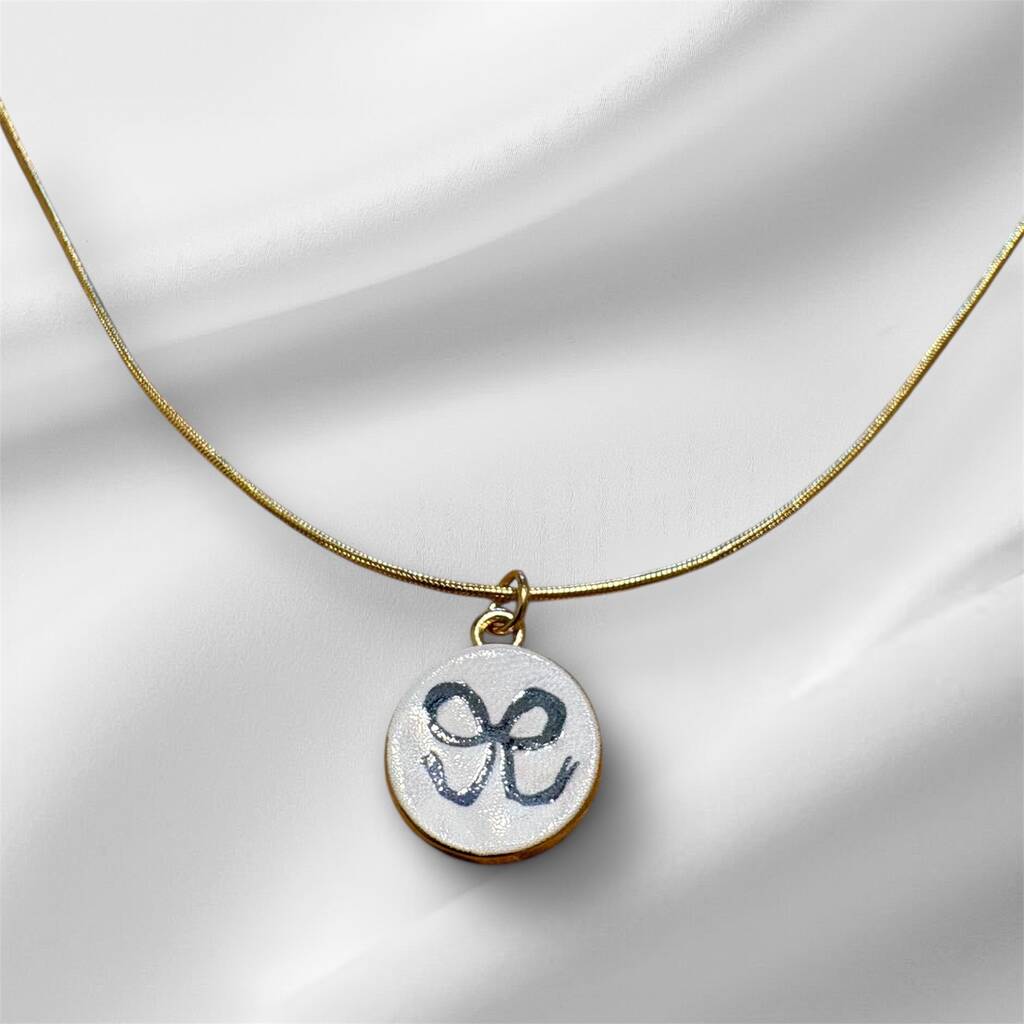 Bow Ribbon Enamel 18ct Gold Plated Necklace