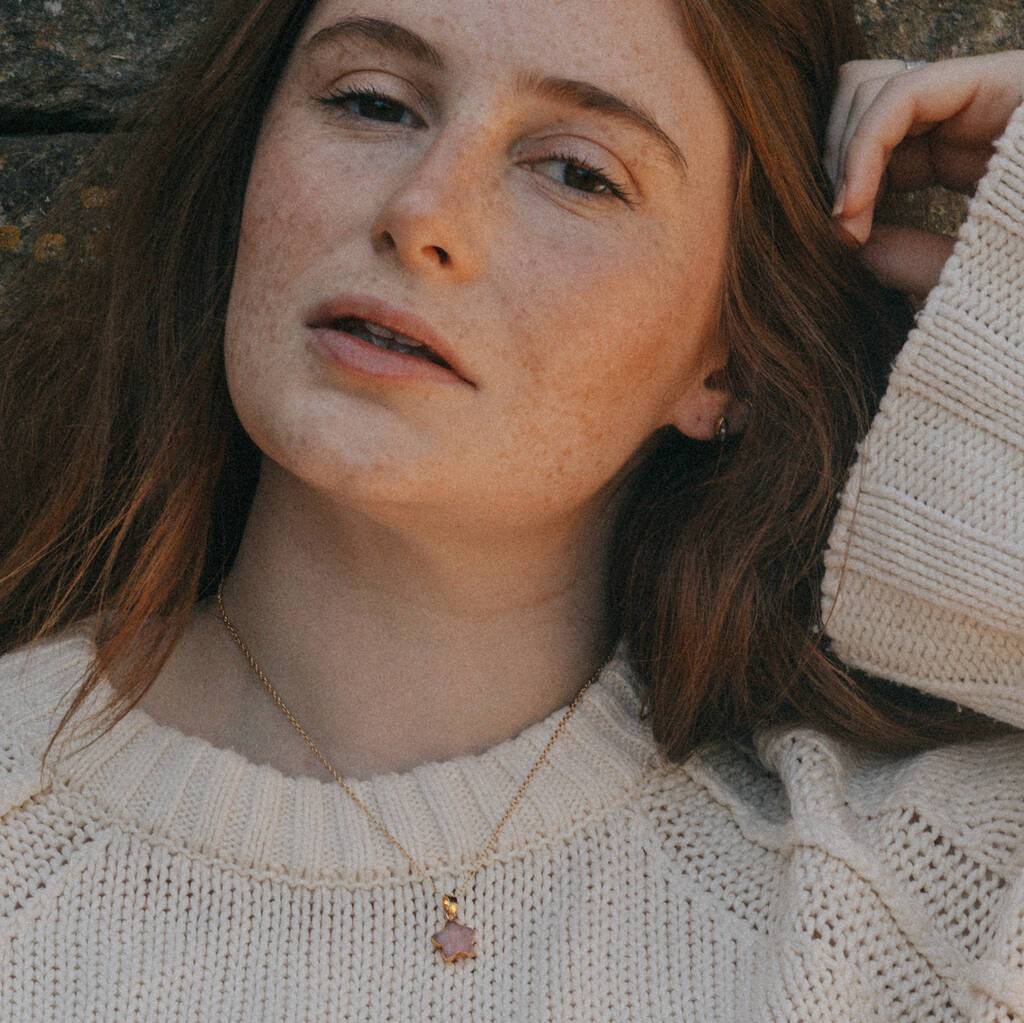 Gold Tone Rose Quartz Crystal Star Necklace, 1 of 5