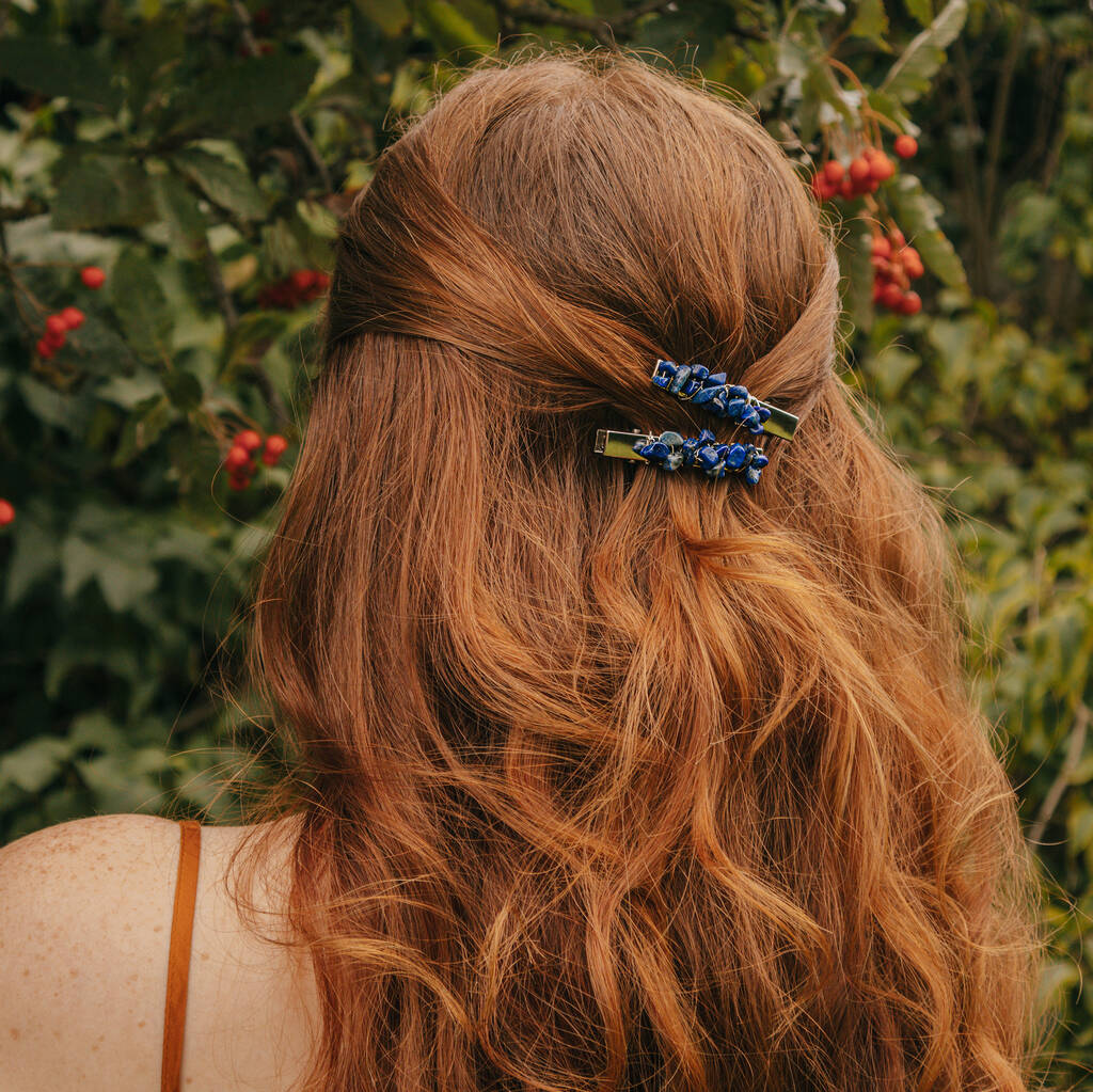 Lapis Lazuli Crystal Hair Clip Set Of Two